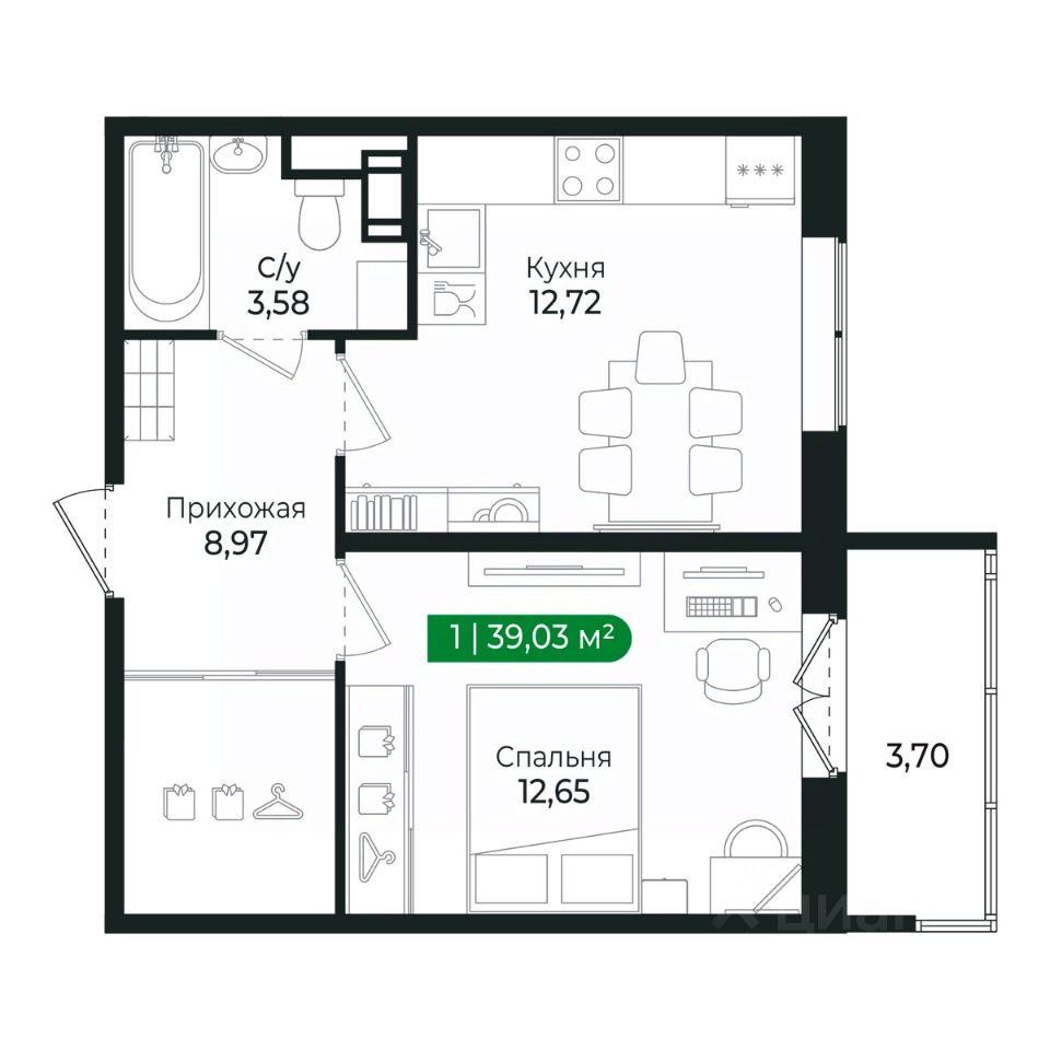 Напрямую продаётся уютная 1-комнатная квартира 357 общей площадью 39,03 м2 во II очереди в жилом комплексе Сертолово Парк от застройщика ГК Алгоритм.