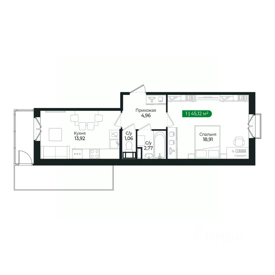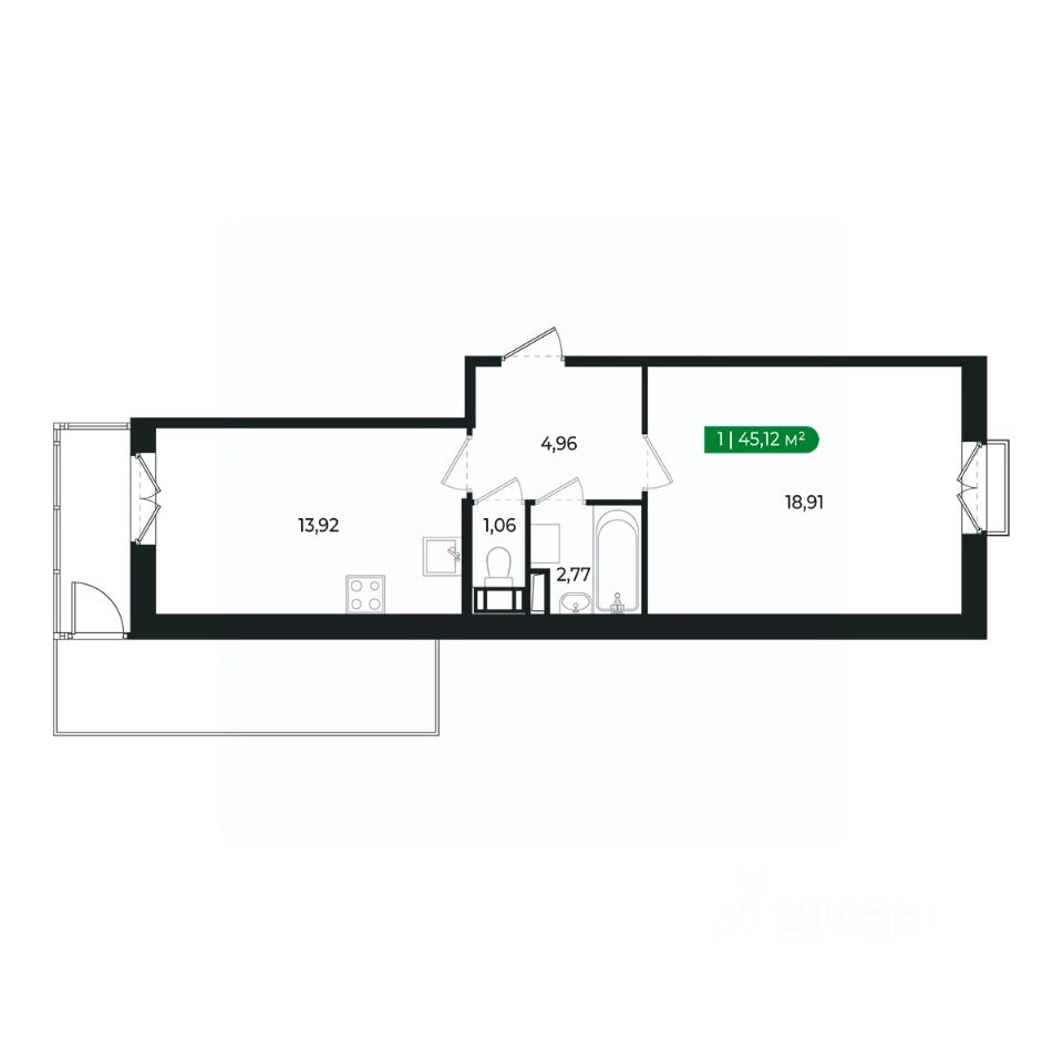 Напрямую продаётся уютная 1-комнатная квартира 365 общей площадью 45,12 м2 во II очереди в жилом комплексе Сертолово Парк от застройщика ГК Алгоритм.