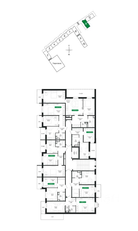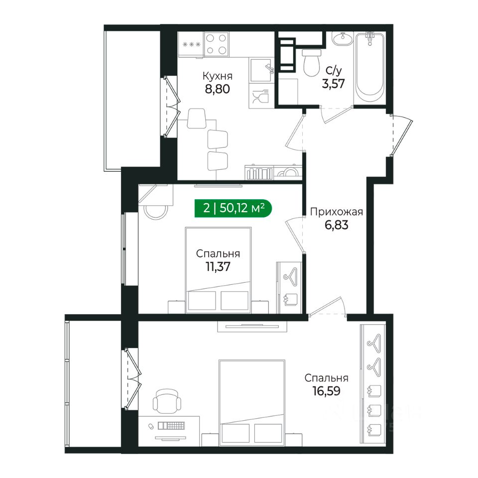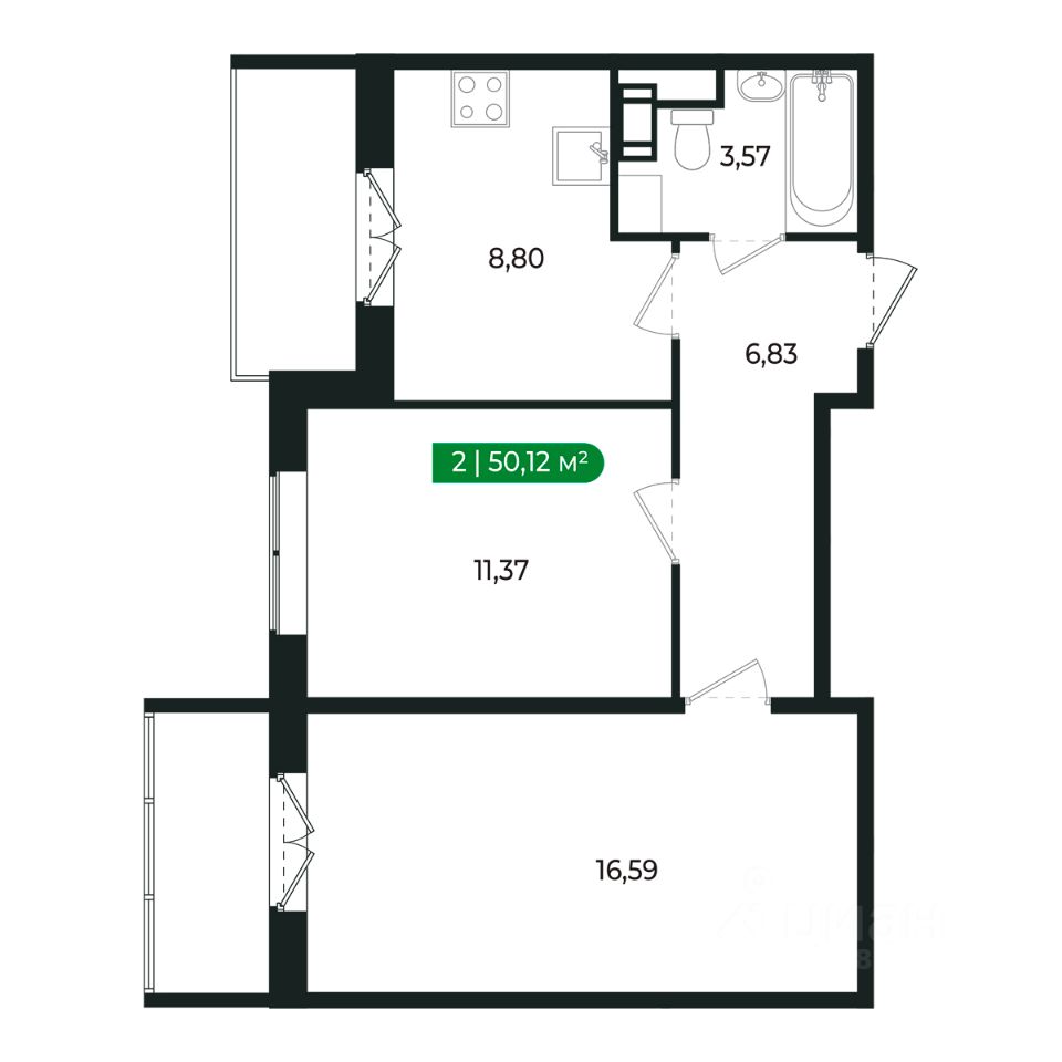 Напрямую продаётся уютная 2-комнатная квартира 367 общей площадью 50,12 м2 во II очереди в жилом комплексе Сертолово Парк от застройщика ГК Алгоритм.