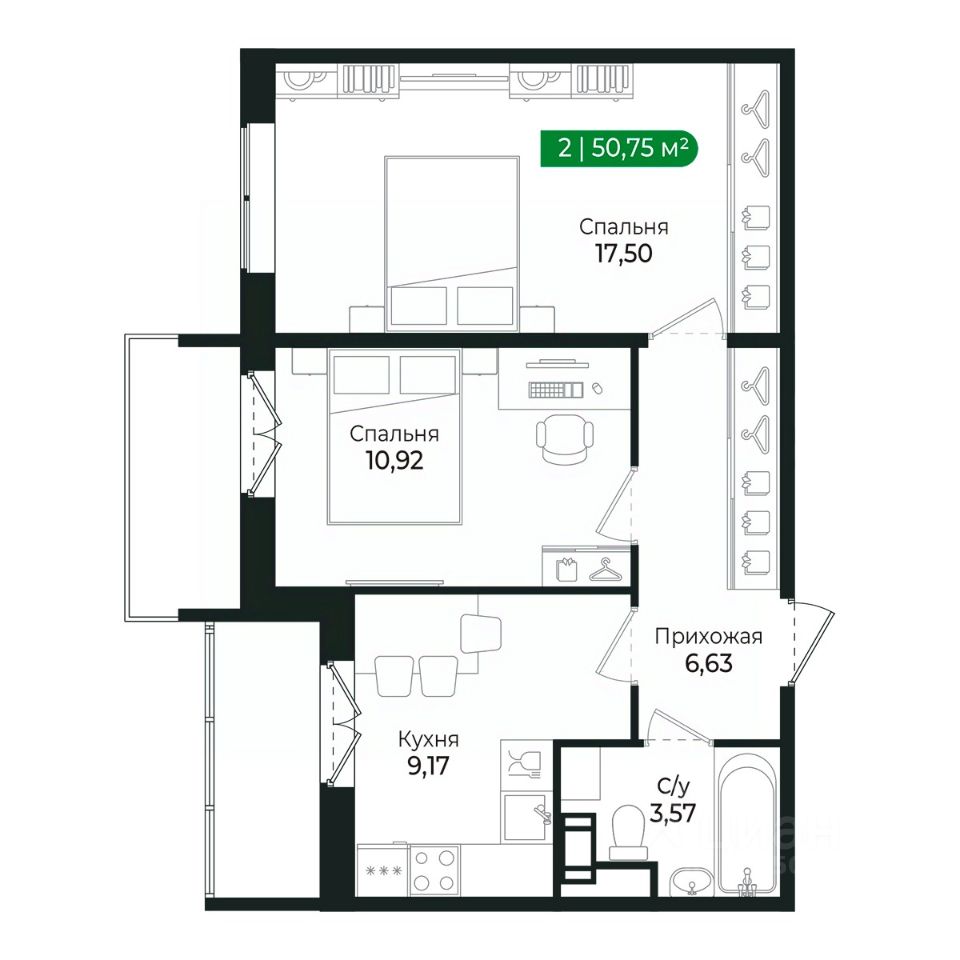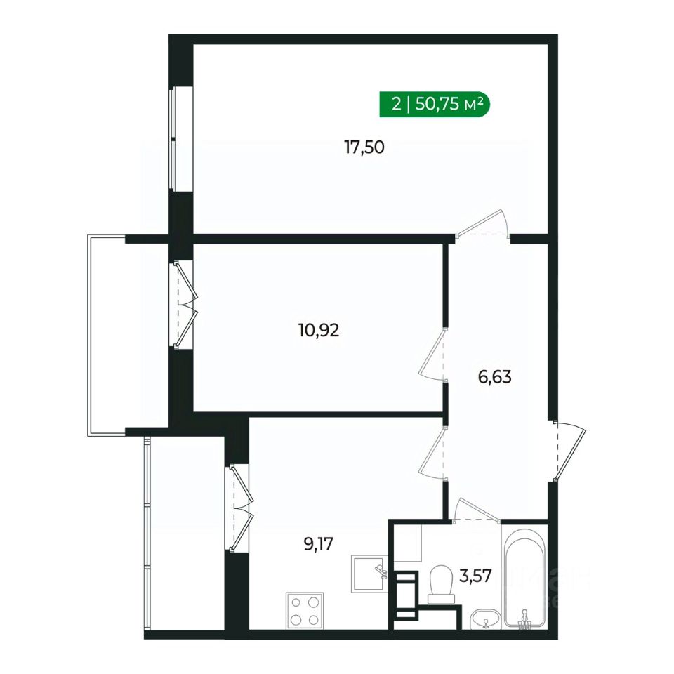 Напрямую продаётся уютная 2-комнатная квартира 368 общей площадью 50,75 м2 во II очереди в жилом комплексе Сертолово Парк от застройщика ГК Алгоритм.