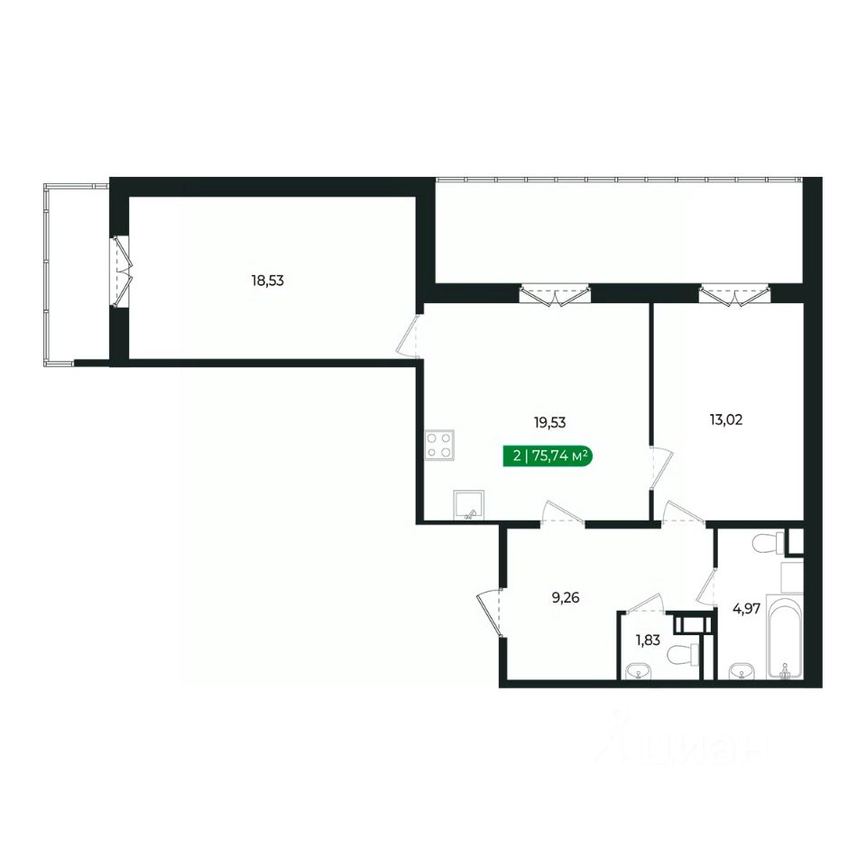 Напрямую продаётся уютная 2-комнатная квартира 369 общей площадью 75,74 м2 во II очереди в жилом комплексе Сертолово Парк от застройщика ГК Алгоритм.