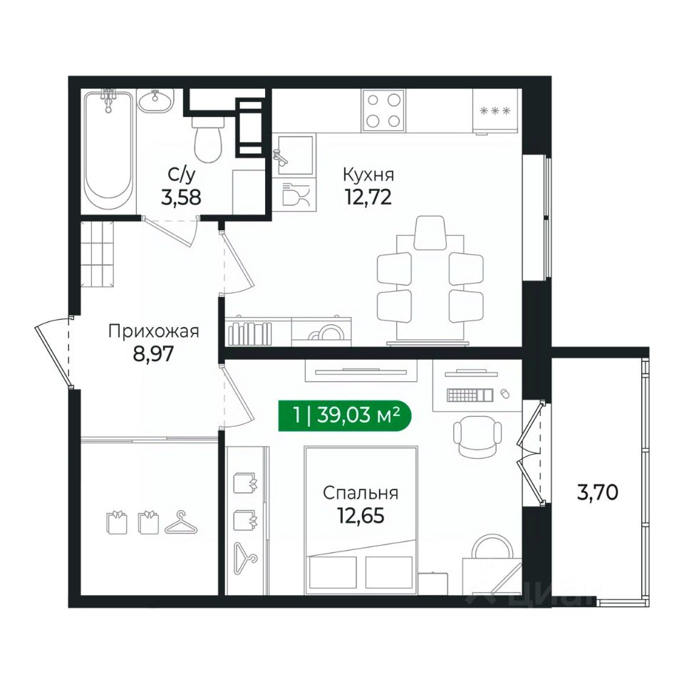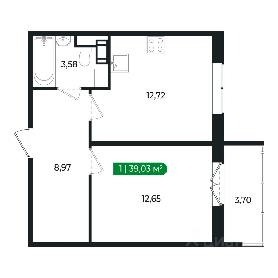 Напрямую продаётся уютная 1-комнатная квартира 371 общей площадью 39,03 м2 во II очереди в жилом комплексе Сертолово Парк от застройщика ГК Алгоритм.