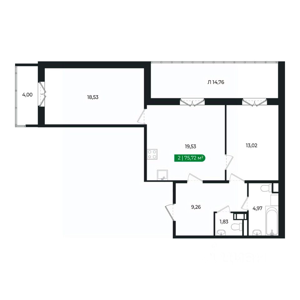 Напрямую продаётся уютная 2-комнатная квартира 376 общей площадью 75,72 м2 во II очереди в жилом комплексе Сертолово Парк от застройщика ГК Алгоритм.