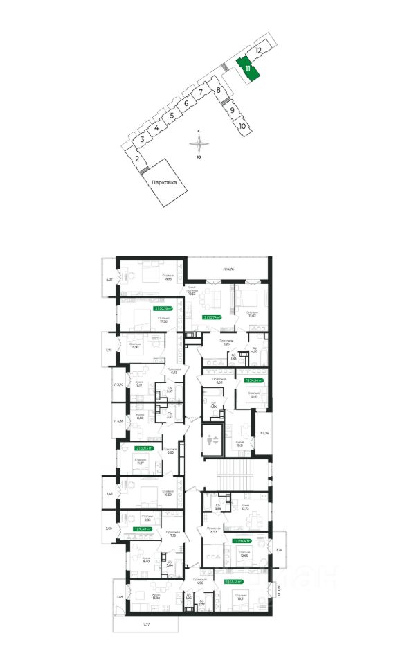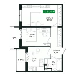 Напрямую продаётся уютная 2-комнатная квартира 382 общей площадью 50,76 м2 во II очереди в жилом комплексе Сертолово Парк от застройщика ГК Алгоритм.