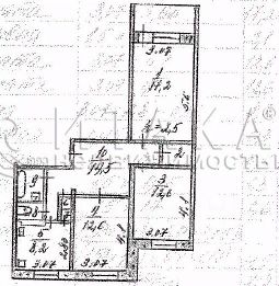комнаты изолированные 12,6+12,6+17,2 кв.м, кухня 8,2 кв.м, просторная прихожая 14.5 кв.м;