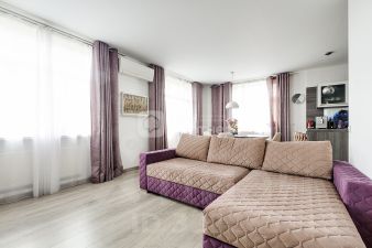 + Солнечная, двухсторонняя, семейная квартира площадью 116 кв.м., с дизайнерским ремонтом. + Планировка соответствует современным тенденциям: -просторная кухня-гостиная с лоджией, оснащенная всей необходимой мебелью и бытовой техникой, где вы будете собираться всей семьей; -две больших спальни, просторная гардеробная, хоз.блок.
