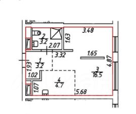 Интересная плaниpовка для студии: общая площадь комнаты 21,2 метра, можно зонировать на зону сна, приготовления пищи и общую зону. В коридоре есть ниша под небольшое шкаф-хранение.