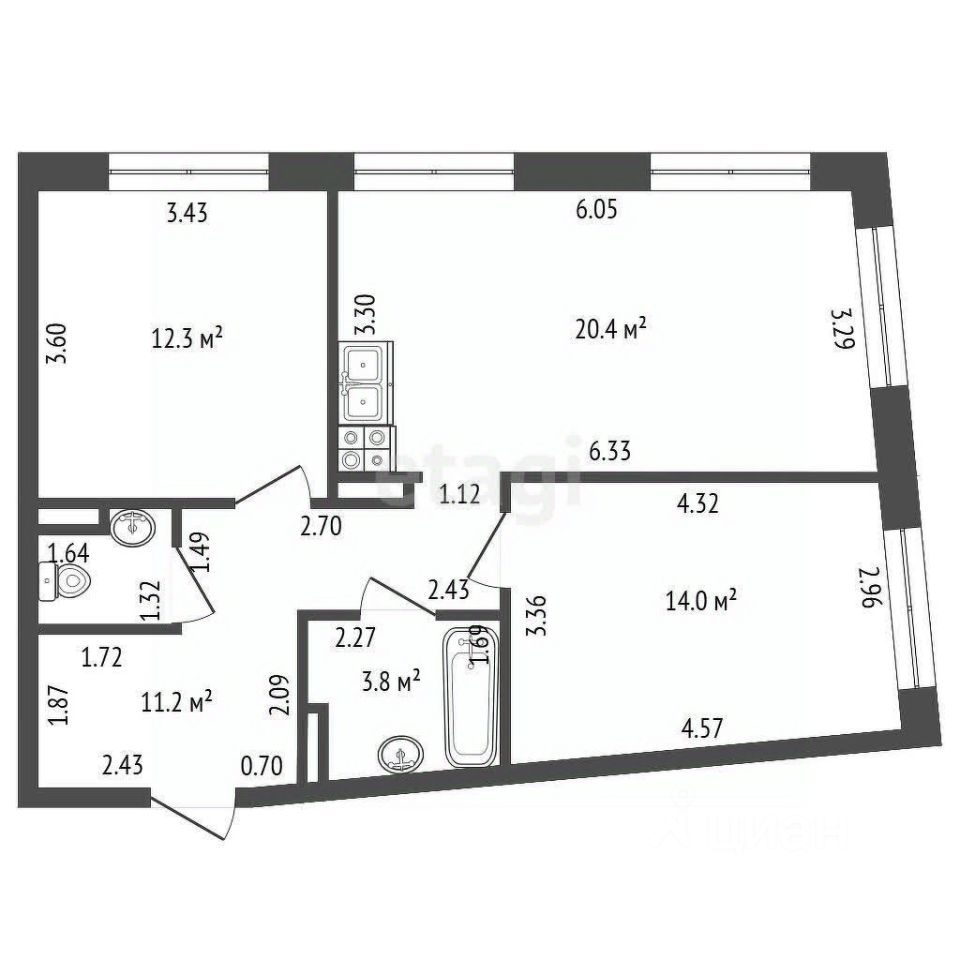 — Просторная площадь 63,7 м² с грамотной планировкой.