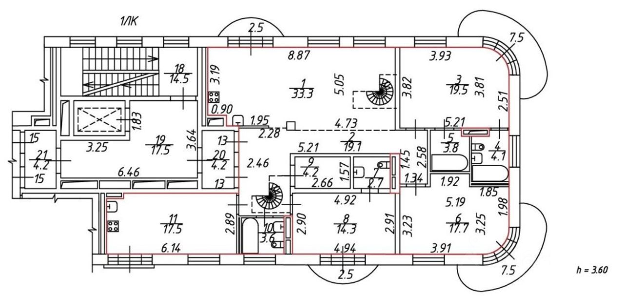 Высота потолка 3,60 м. обеспечивает качественную эргономику планировочного решения.