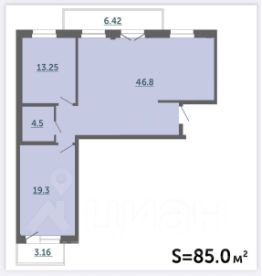 Гостиная-кухня 46 м2 с большим балконом и залом в три окна!
