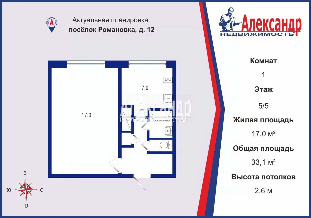 1704735 Продам 1к.кв., общей площадью 33,1 м2, 5/5 этажного панельного дома серии 1-ЛГ-600, 1984 г.