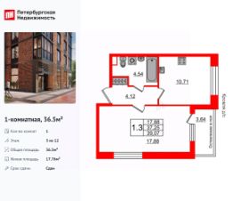 Удобная, классическая планировка, кухня 10.74 м², вместительная прихожая 3.84 м². Общая площадь квартиры - 36.5 м², жилая 17.76 м², высота потолка 2.77 м.