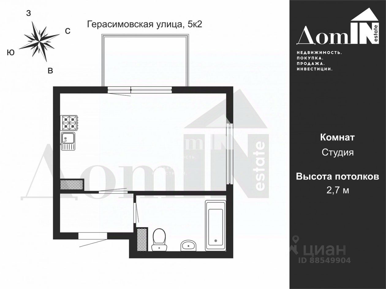 Высокие потолки 2,7 метра для простора и свободы