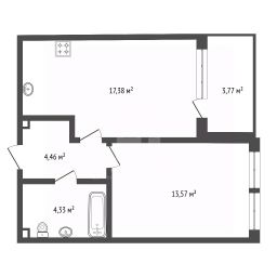 Общая площадь квартиры составляет 41,6 кв. м, из которых кухня-гостиная занимает — 17,38 кв. м., а спальня 13,57 кв. м. Высота потолков — 3 метра, что создаёт ощущение простора и свободы. Окна в квартире выполнены из натурального дерева, а на лоджии выполнено безрамочное остекление, что позволяет в теплые дни превращать лоджию в террасу.