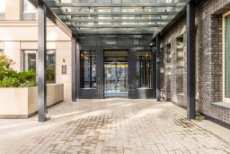 Сам жилой комплекс представляет собой клубный дом высотой до 9 этажей. На первом этаже здания расположены просторный парадный холл и лаундж-зона, помещение охраны и службы консьерж-сервиса с диспетчерской, а также колясочная с клининговым блоком, где удобно мыть колеса и лапы домашних питомцев. Оформление вестибюля центральной входной группы выполнено из экологичных материалов. В основе их сочетания лежит гармония природной цветовой гаммы и различие текстур натурального камня, дерева и металлической глади.