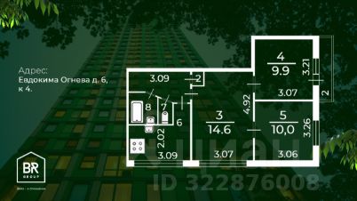 Жилая 34,5 м2 (14.6+9.9+10 )