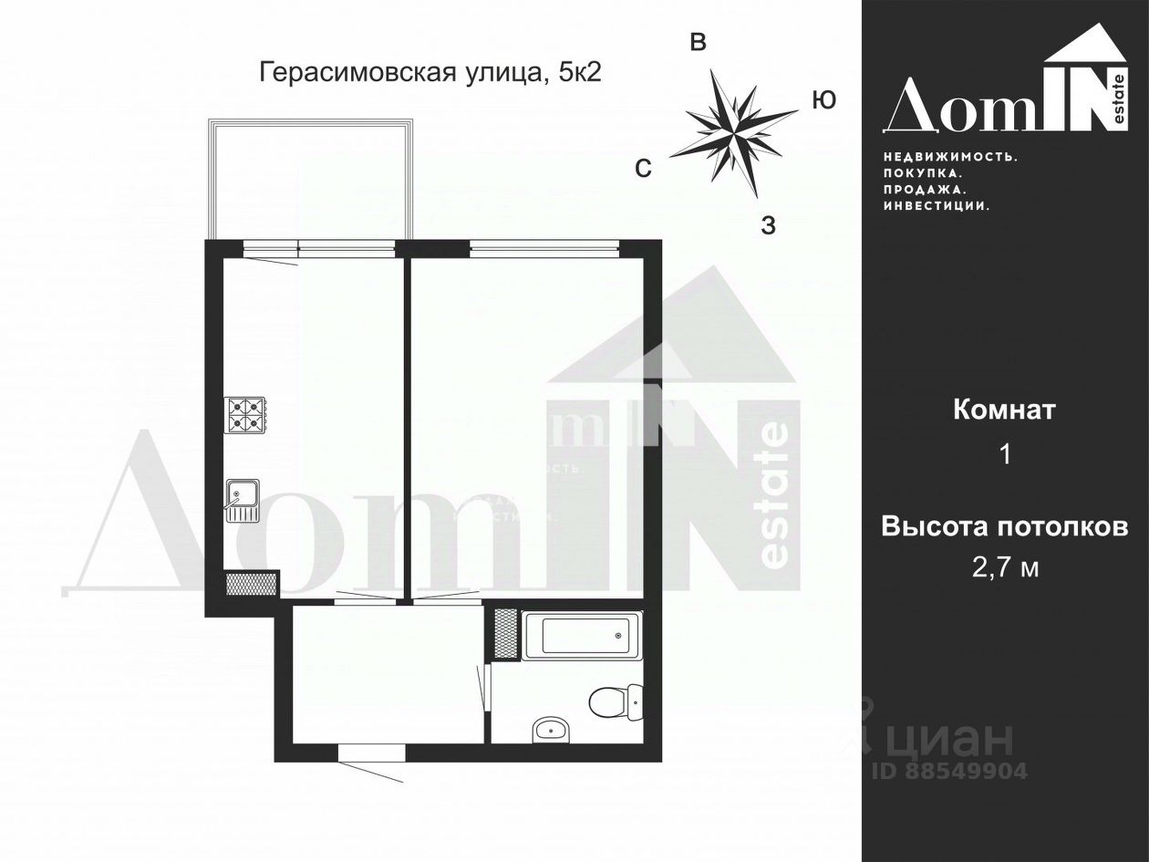 Высокие потолки 2,7 метра для простора и свободы
