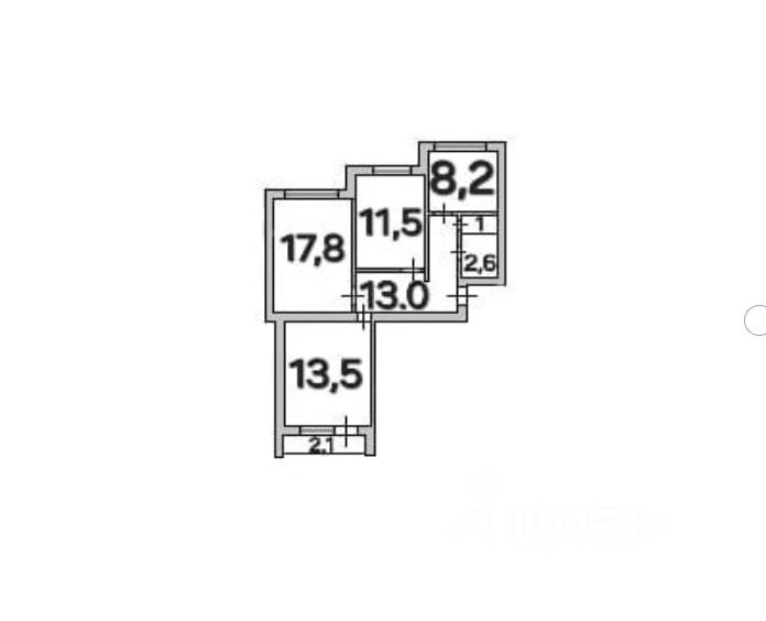Три изолированные комнаты правильной формы( 17,8 м², 13,5 м² 11,5 м²) — идеально для семьи или гостей.