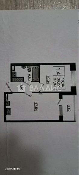 Жилая площадь составляет 10,3 кв. м, а кухня — 17,5 кв. м. Высота потолков 2,8 м создаёт ощущение простора и свободы.