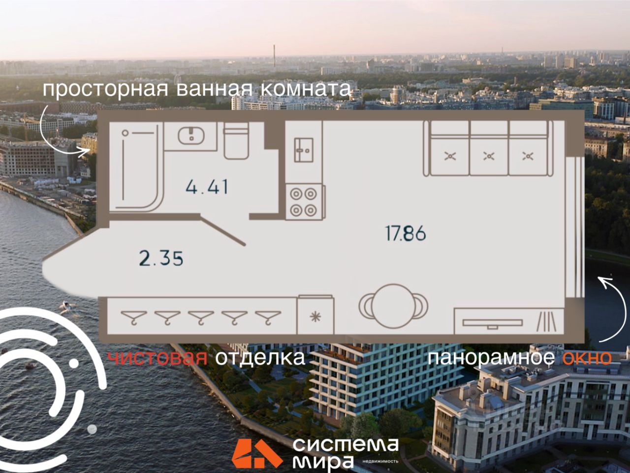 Апартаменты светлые, с большими окнами и видом на прогулочную набережную р. Малая Нева. Планировка удобная - просторная жилая зона, кухня-ниша, место под шкаф, санузел с современными коммуникациями. Чистовая отделка, можно заезжать и жить сразу без лишних затрат.