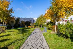 - Во дворе пруд с набережной и благоустроенная зона для отдыха с лавочками.