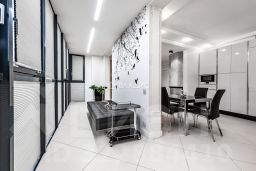 Роскошь в деталях: Биокамин из белого мрамора с живым огнем, люстра из Муранского стекла, межкомнатные стеклянные двери.