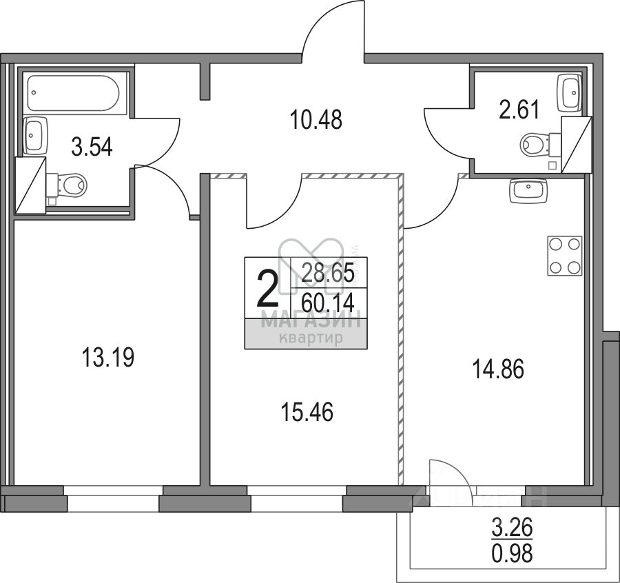 61,12 м²