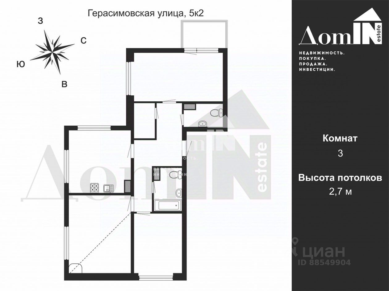 Высокие потолки 2,7 метра для простора и свободы