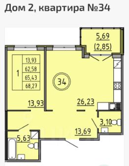 Общая площадь квартиры 62.8 м , зонированная кухня-столовая 26.5 м , площадь комнаты 14 м, Два санузла , гардеробная и огромный застекленный балкон.
