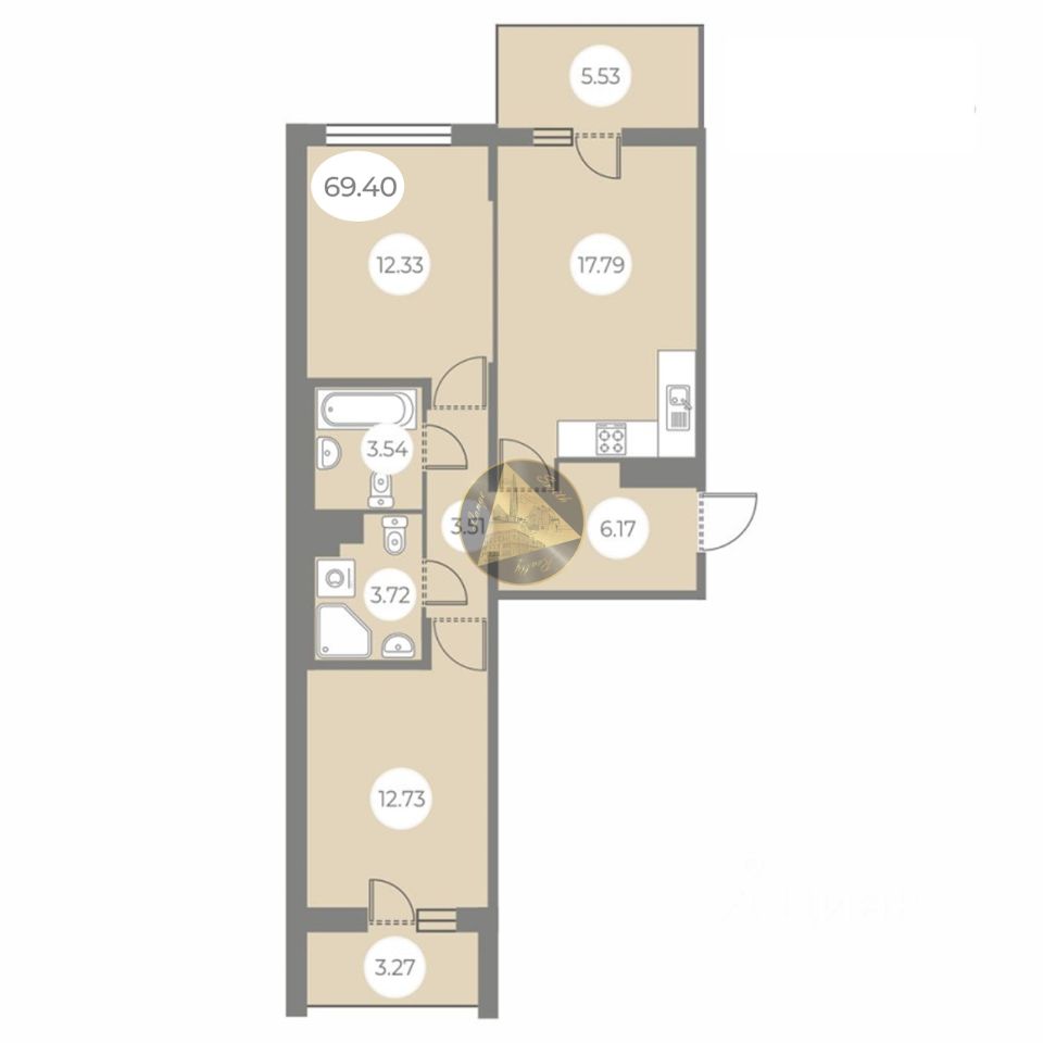 - Общая площадь квартиры 69.40 м2