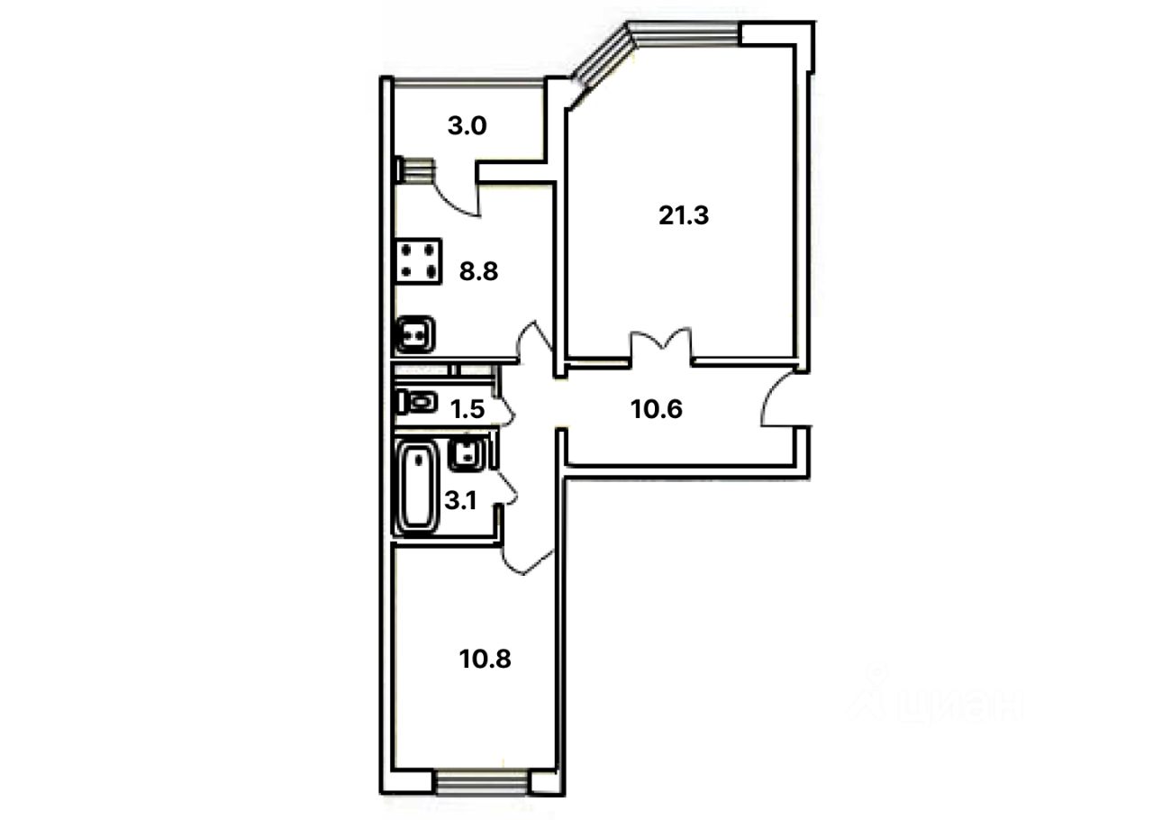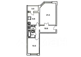 Кухня - столовая 8.8 кв.м. с возможностью разделения на зону готовки и обеденную зону с выходом на остекленную лоджию 3.0 кв.м., которая станет дополнительным пространством для отдыха или хобби. Две спальные комнаты: 21.3 кв.м. и 10.8 кв.м. Прихожая 10.6 кв.м с местом под шкаф. Санузел раздельный. Вид во двор и на улицу.