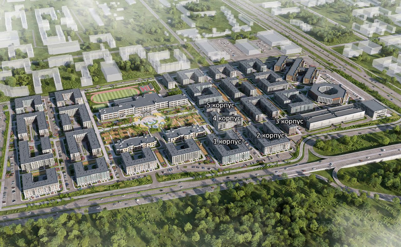 В составе квартала: 30 пятиэтажных домов, школа со спортивным стадионом, 2 детских сада, наземные и подземные паркинги, центральный зеленый бульвар с play hub и местами отдыха для детей. Благоустройство квартала продумано до мельчайших деталей, в его основе - забота о качестве жизни каждого жителя.