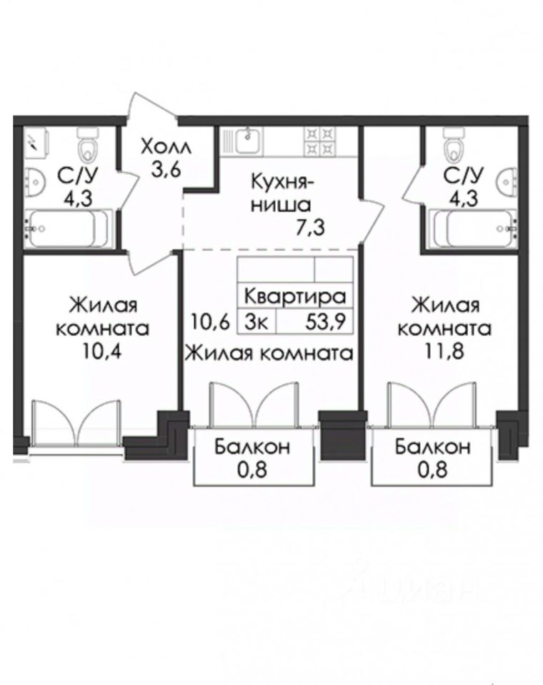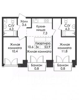 341347 Продаётся 2-комн.квартира площадью 53,9 кв.м, из которых 22,2 кв. м отведено под жилую и 17.9 кв. м под кухонную зону, на 3 этаже 9 этажного дома.