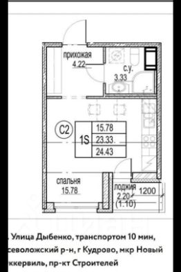 Развитая инфраструктура района предлагает все необходимое для комфортной жизни: рядом находятся школы, детские сады, магазины. Время в пути до метро "Улица Дыбенко" на автомобиле составляет всего 4 минуты, что делает передвижение по городу быстрым и удобным.