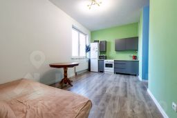 Общая площадь квартиры — 36,3 кв. м, жилая — 12,57 кв. м, площадь кухни — 16,13 кв. м. Высота потолков — 3 м. В квартире есть лоджия. Квартира угловая, комнаты изолированы, окна выходят на улицу.