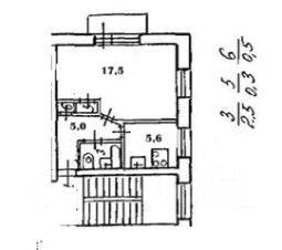 Квартира угловая общей площадью 31,4 кв.м., Комната 17,5 кв. м., кухня 5,5 кв. м