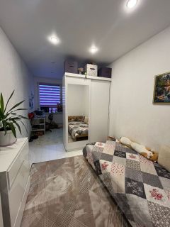 В квартире очень удобная и функциональная планировка- просторная кухня-гостиная 12 кв.м. и комната 13кв.м. Просторная лоджия, выходящая в закрытый зелёный двор.