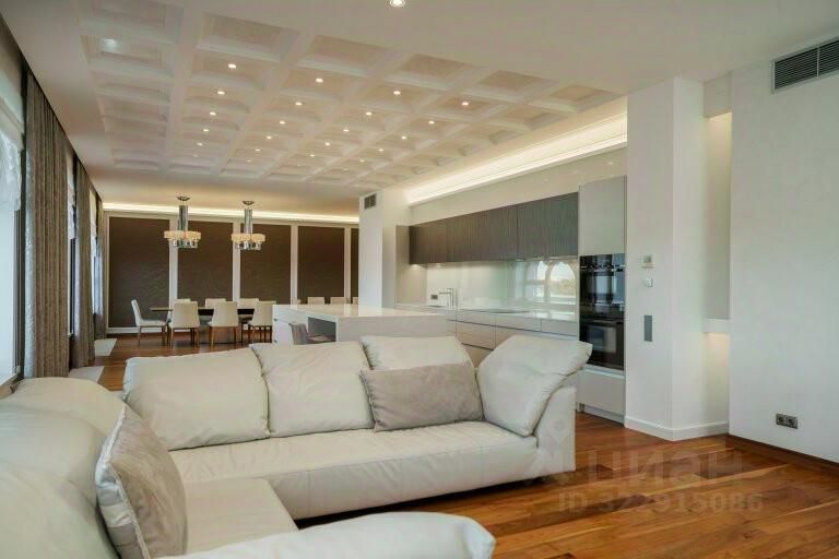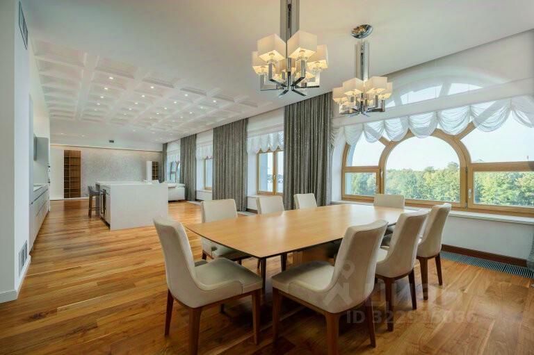 Планировка хороша и может быть доведена до совершенства. Сейчас включает в себя гостеприимный холл с гардеробной и гостевым санузлом, приватную хозяйскую зону и просторное гостевое пространство.Изюминка квартиры — это несомненно гостевое пространство. Более 90 м² с прямым видом на воду. Это один из лучших видов в городе — излучина Невки, Елагин, все новые доминанты. Четыре больших окна, два из которых арочные — выгляди очень эффектно. Само пространство поделено на три функциональные зоны — обеденную зону с большим столом на 12 персон, диванную зону и зону кухни с отдельным островом, за которым можно удобно расположиться с чашкой кофе. Кухня вся укомплектована техникой Kuppersbusch, в том числе винный шкаф и холодильник. Сама кухня от известного бренда LEICHT.Приватная хозяйская зона отделена от остальной части квартиры. Включает в себя мастер спальню родителей, большую детскую комнату с балконом и со своей ванной комнатой, постирочную, гардеробные и комнату для мини спортивного зала. Вся мебель от итальянских и немецких брендов Besana и Bod'or КТМ.