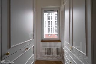 Пространство разделено потайной дверью на представительскую и приватную зоны. Большие возможности по системам хранения (есть гардеробная комната с окном).