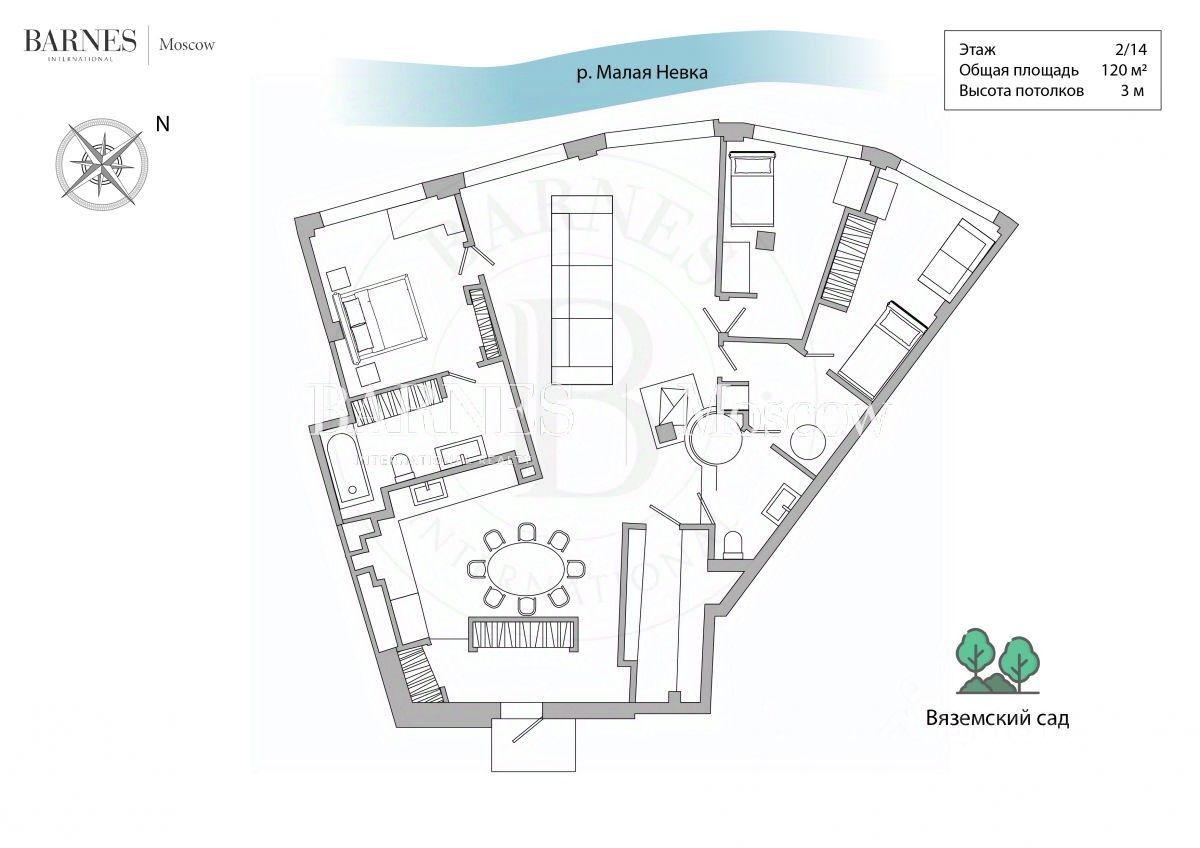 Дом расположен в тихом и зелёном районе на Петроградской стороне, с видом на Малую Невку. Здесь живут известные личности — артисты, бизнесмены, медийные фигуры — атмосфера приватности и статуса чувствуется с порога.