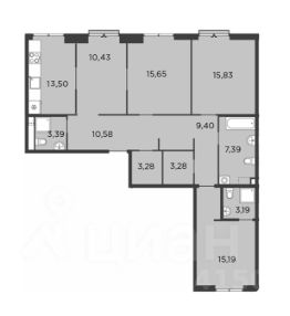 Планировка включает: Планировка включает: просторный коридорприхожую с местом для размещения гардеробного шкафа, гостевой санузел, отдельную гардеробную комнату, три жилые комнаты, одна из которых — мастерспальня с собственным санузлом и гардеробной, кабинет, кухнюстоловую и совмещённый санузел.