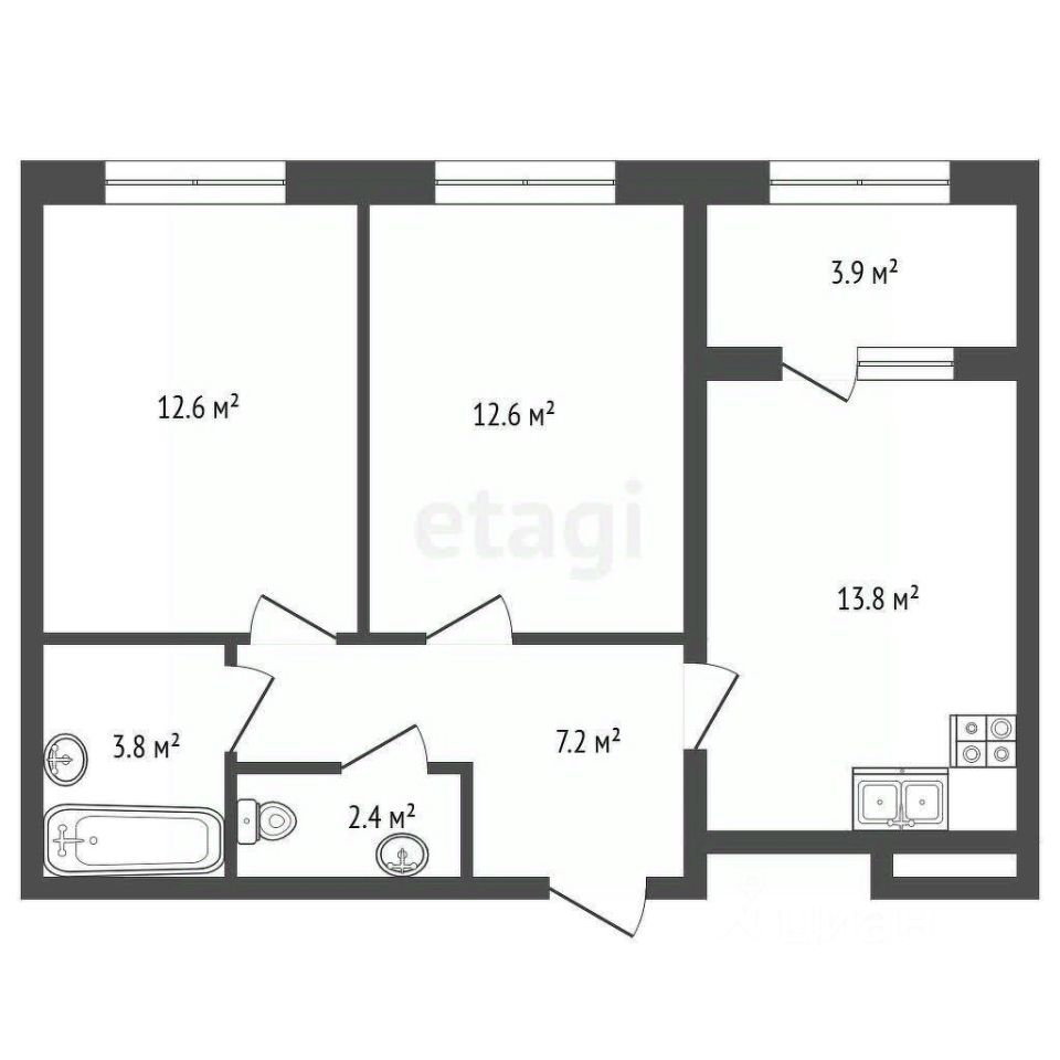 К покупке предлагается двухкомнатная квартира (3 евро) в ЖК Дубровский.