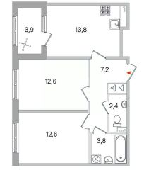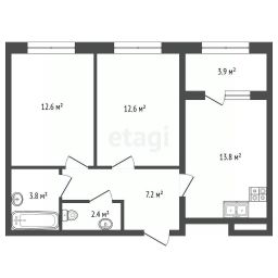 Два санузла площадью 3,8 и 2,4 кв.м.