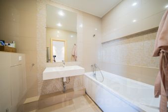 Планировка квартиры включает в себя две изолированные спальни, два санузла и кухню, переходящую в просторную гостиную. В одном из санузлов расположена ванна, в другом душевая, стиральная и сушильная машины расположены в отдельном хозблоке. На случай отключения горячей воды есть водонагреватель. В каждой спальне установлен свой кондиционер. В квартире утеплённые лоджии 3.4м. и 4.8 м. с подогревом и возможностью эксплуатации зимой. Везде, где это необходимо, есть теплые полы.