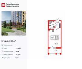 Удобная, классическая, функциональная европланировка, вместительная прихожая 3.05 м². Общая площадь студии - 24.6 м², жилая 18.33 м², высота потолка 3.07 м.