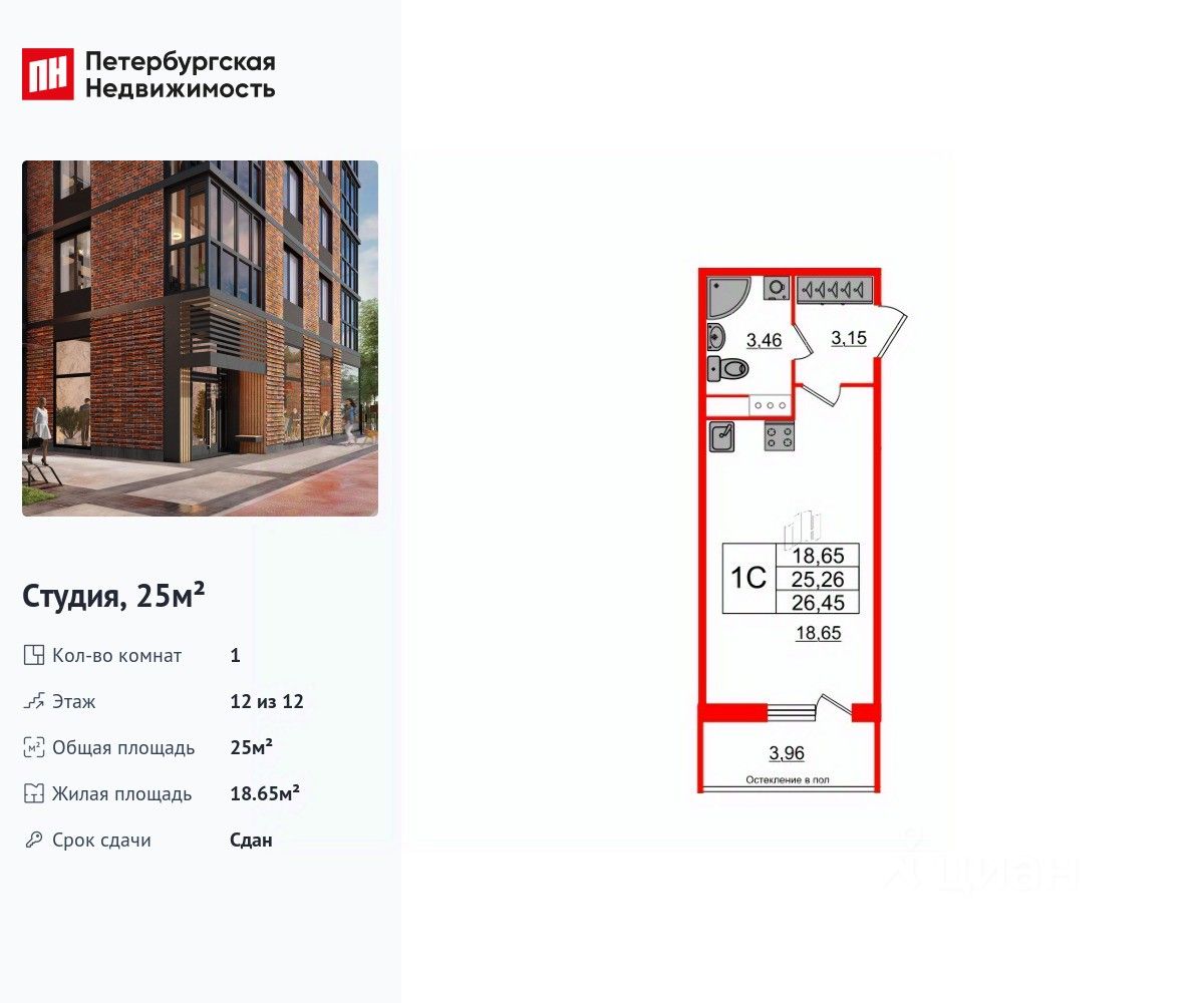 Продается просторная студия от застройщика в жилом комплексе "Сенат" в престижном Московском районе.