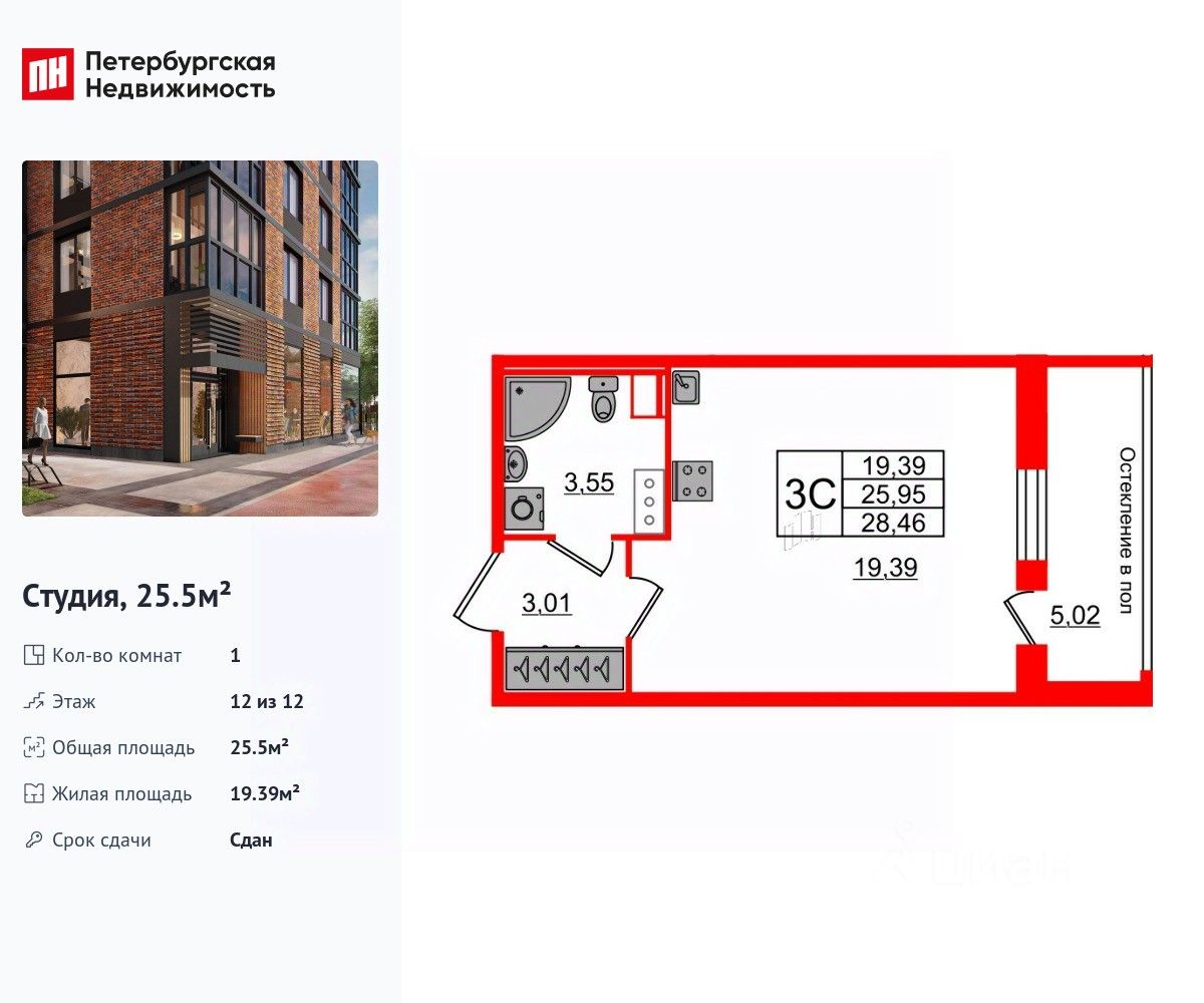 Продается просторная студия от застройщика в жилом комплексе "Сенат" в престижном Московском районе.
