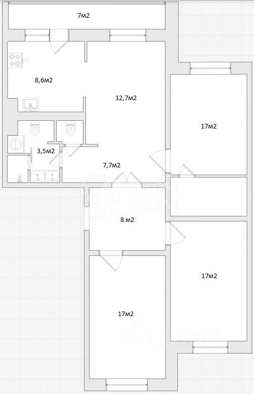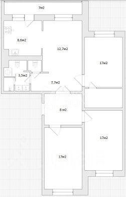 - Просторные жилые комнаты (по 17 кв.м.)