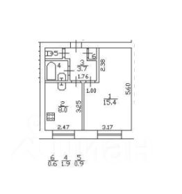 Общая площадь квартиры составляет 30,5 кв. м, из которых 15,4 кв. м — жилая площадь, 8 кв. м — кухня. Высота потолков — 2,7 м.