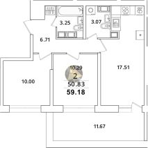 Срочно продаётся 3Е-квартира с двумя спальнями общей площадью 59.18 м2. в Калининском районе Санкт-Петербурга. Квартира находится в доме комфорт-класса в районе с развитой инфраструктурой. Идеальная квартира для комфортной жизни в окружении парков.